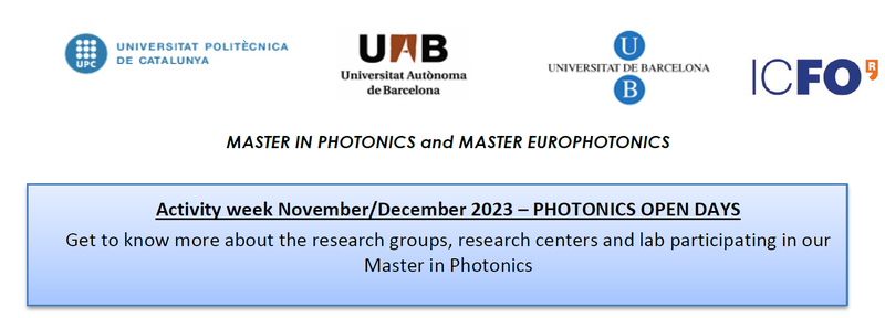During these days, the students can get to know more about the research groups, research centers and labs participating in our Master in Photonics. Some seminars are also planned. These activities are part of the academic program so the students are strongly encouraged to participate.